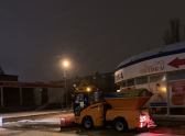 Как сообщили в пресс-службе администрации города, снегопад начался в 2:45. Тогда же на улицы города вышли 10 комбинированных дорожных машин (КДМ) с песко- соляной смесью и две машины с бишофитом.