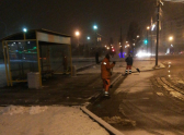 Позже, в 4:30, приступили к очистке от снега на территории остановочных пунктов и на пешеходных дорожках. В 6:00 силы усилили и выпустили на дороги еще 19 тракторов.