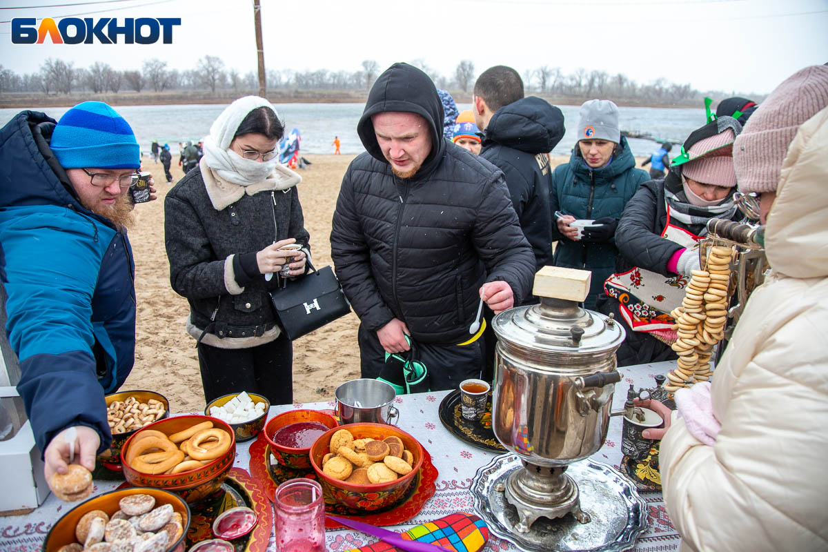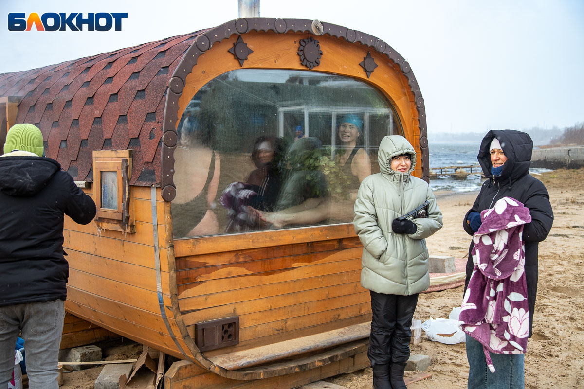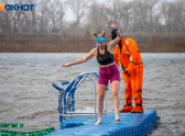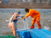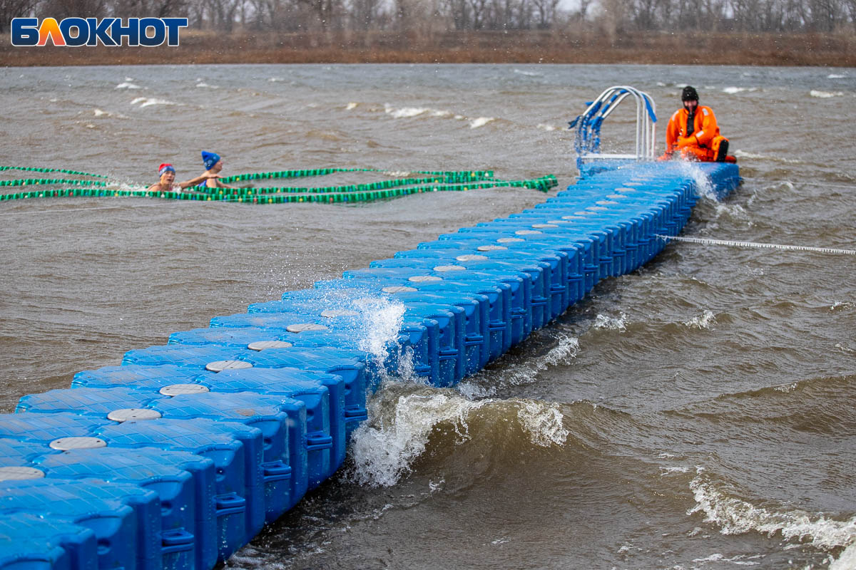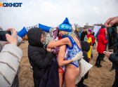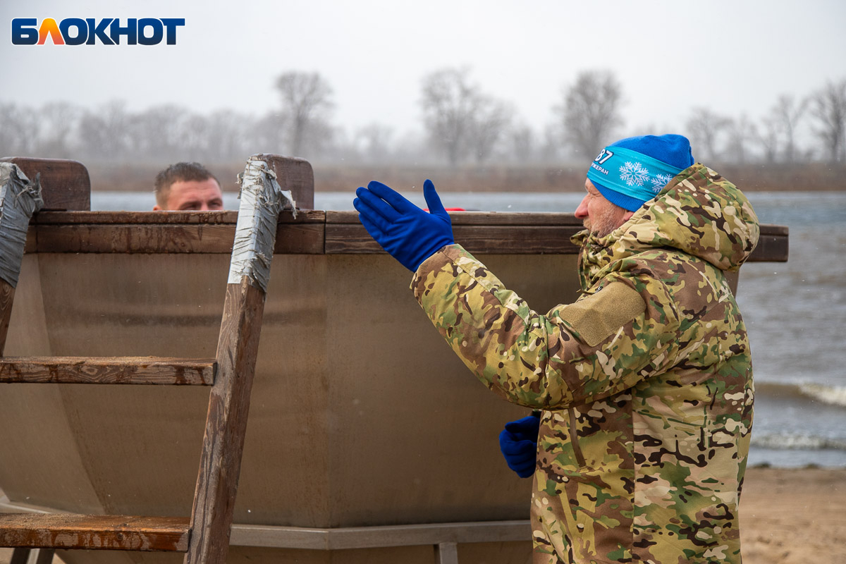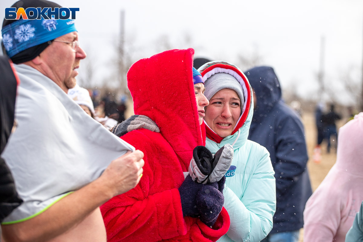 В Волжском спортсмены в топах и миниюбках пробежали по городу и прыгнули в ледяную воду во время шторма