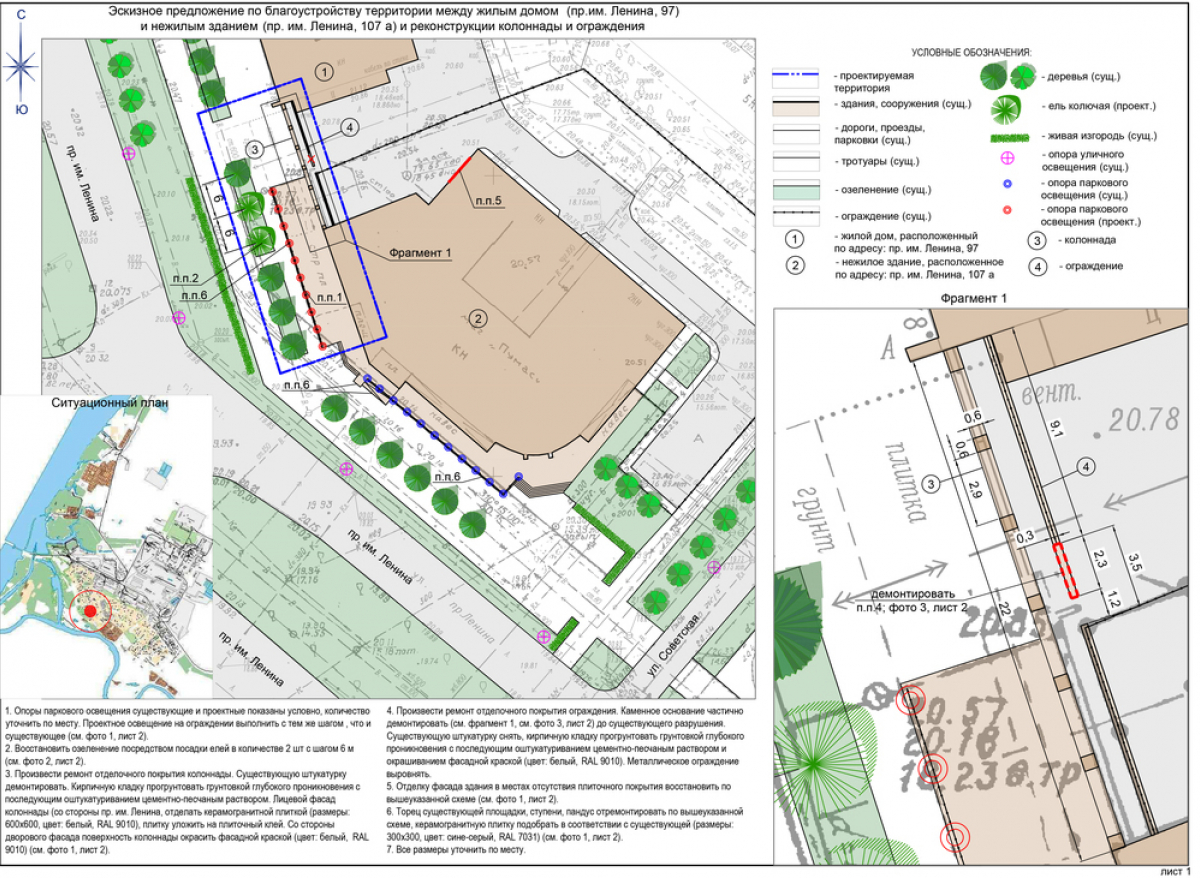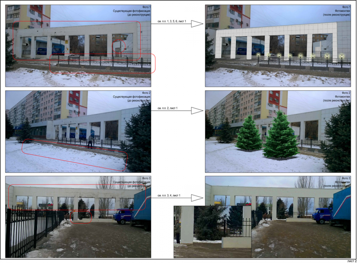 Полуразрушенный объект и прилегающая к нему территория с ограждением выглядят не очень эстетично. Для того чтобы исправить ситуацию чиновниками был разработан эскизный проект, как привести в порядок данную территорию.