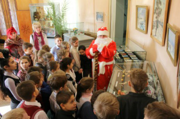 Первыми, кто увидел ретро-игрушки стали ученики школы №2. Специально для юных посетителей увлекательную экскурсию провел Дед Мороз. Ребята узнали об истории новогодних игрушек, поздравительных открыток и многом другом.