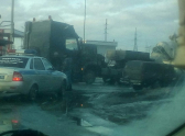 В среду, 27 декабря, в районе послеобеденного времени на пересечении улиц Логинова и Кирова, Александра из маршрутки заметила кортеж военной техники. Особое внимание девушка уделила "проезжающему" на машине вертолету. Это достаточно необычное явление для нашего города создало пробку среди автолюбителей.