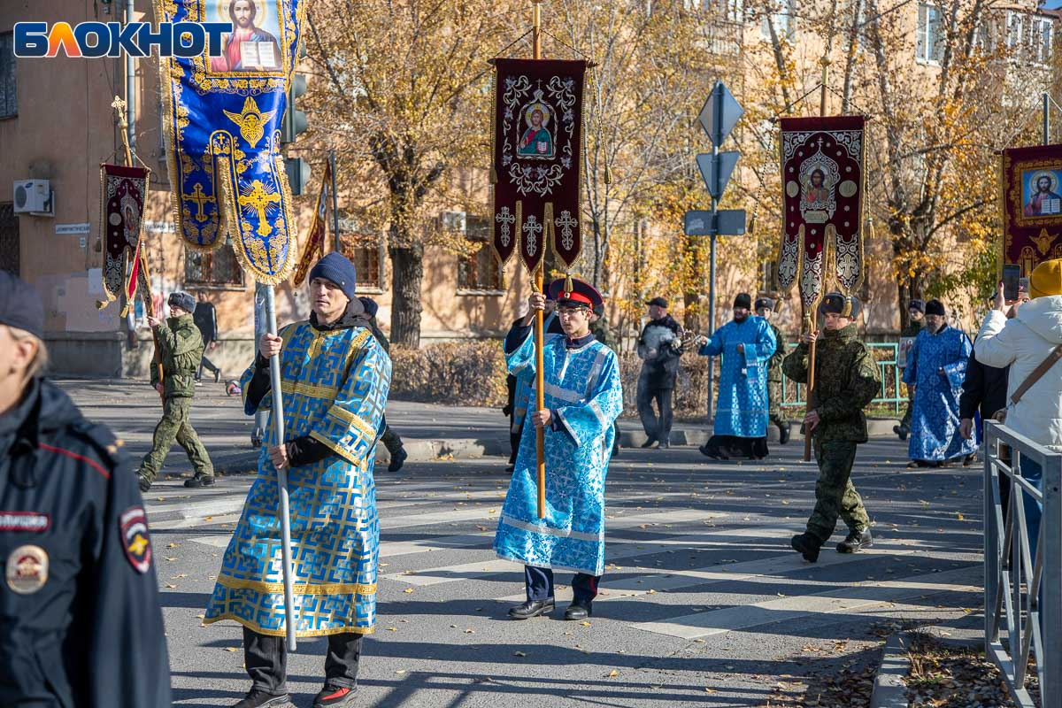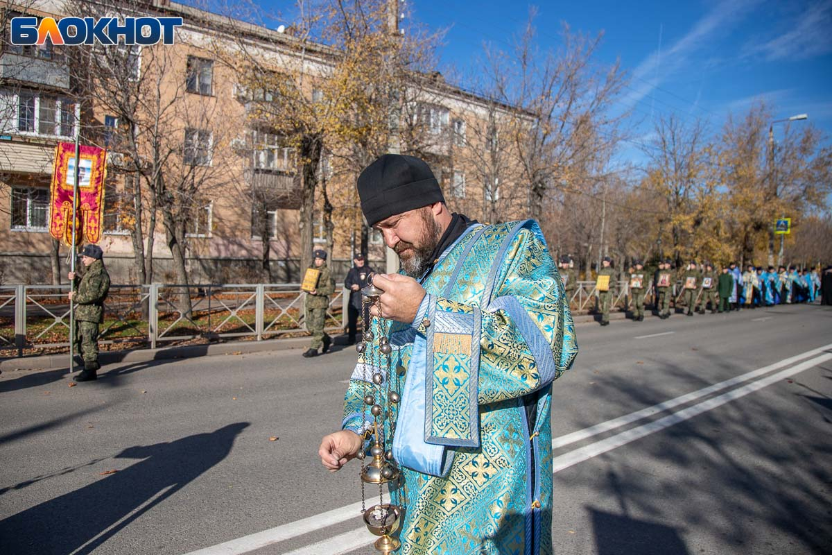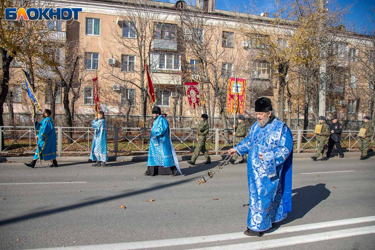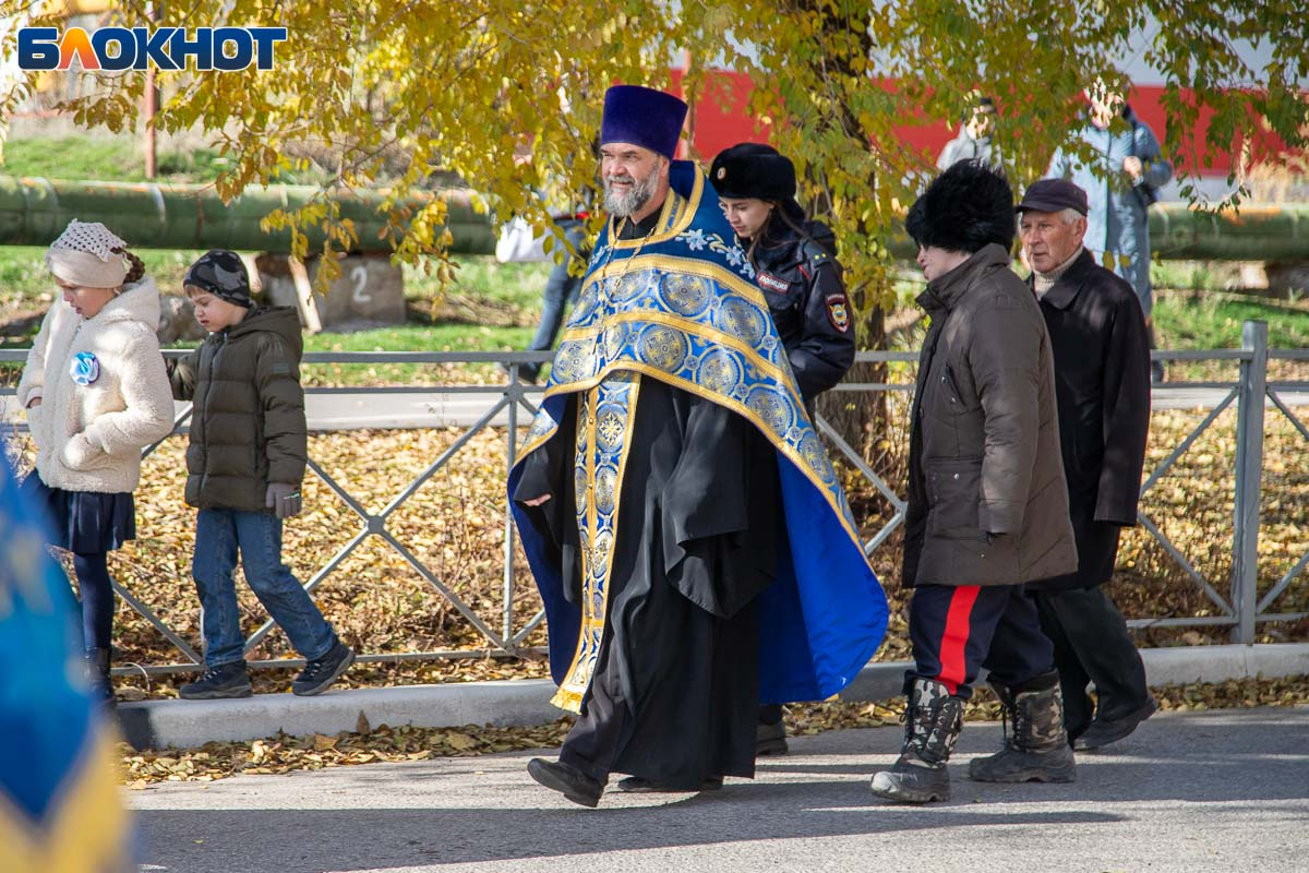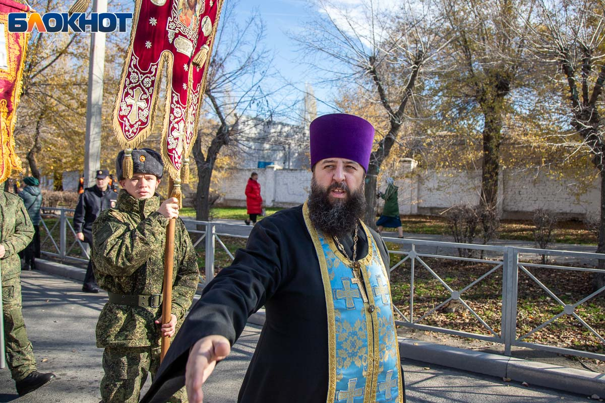 Возглавил крестный ход епископ Калачевский и Палласовский Иоанн. Рядом с ним в колонне шли священнослужители Волжского благочиния, участники СВО и их родственники, военнослужащие, казаки, представители администрации и городской Думы, общественных организаций, а также школьники и студенты.