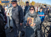 Под звуки мобильной колокольни и пение церковного хора участники шествия несли хоругви и иконы, читали молитвы и просили благословения для родного города и страны. Особые молитвы звучали за тех, кто сейчас находится на передовой.