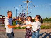 В этот день администрация города приготовила обширную развлекательную программу как для детей, так и для взрослых. В 17:00 стартовал патриотический велопробег. Жители в народных костюмах проехали от Центрального стадиона до площади Ленина.
